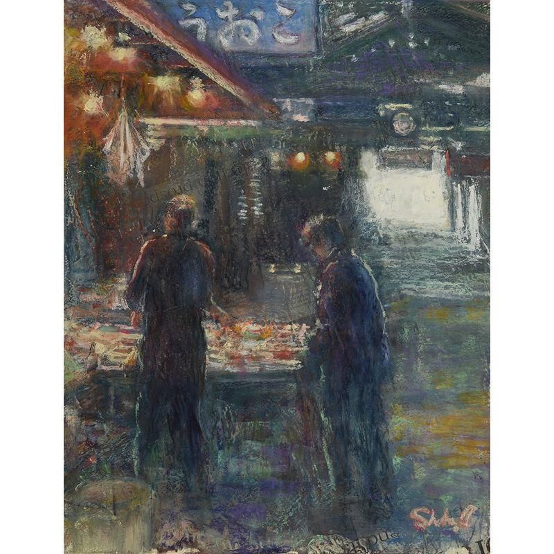 乾 しょうこ 「七曲市場」 オイルパステル6号