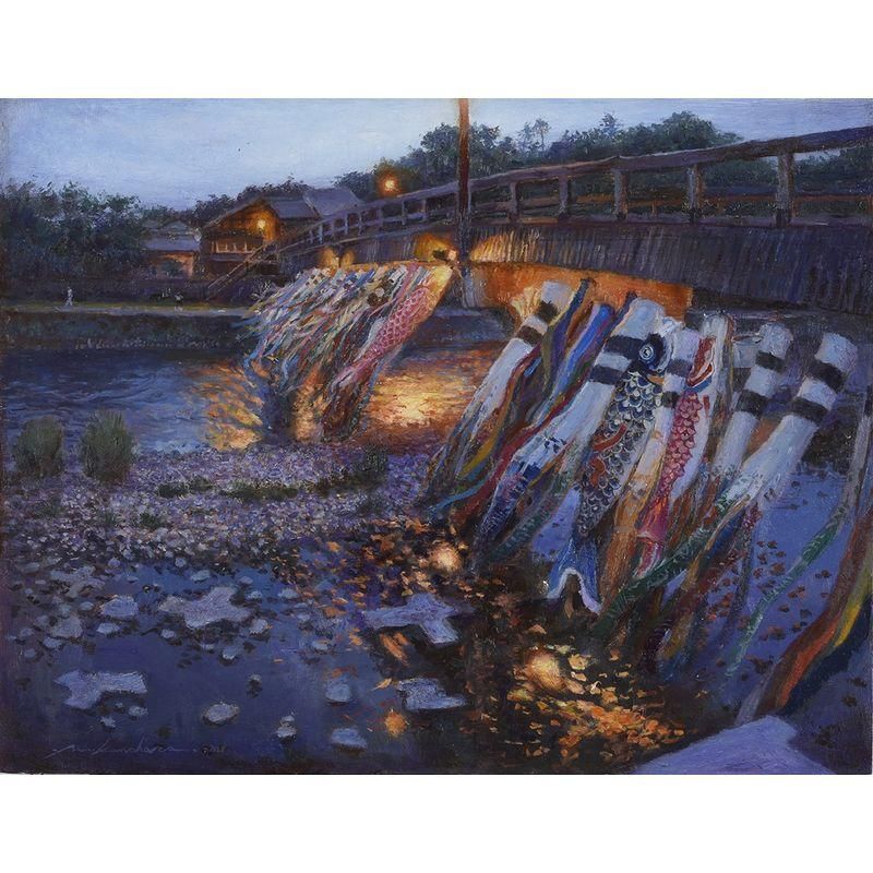 河原 裕 「橋に鯉のぼり」 油彩6号