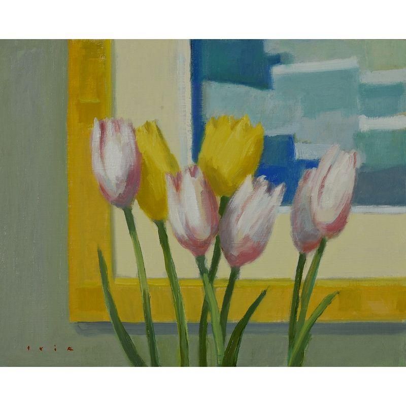 入江英三 「絵の前のチューリップ」 油彩3号