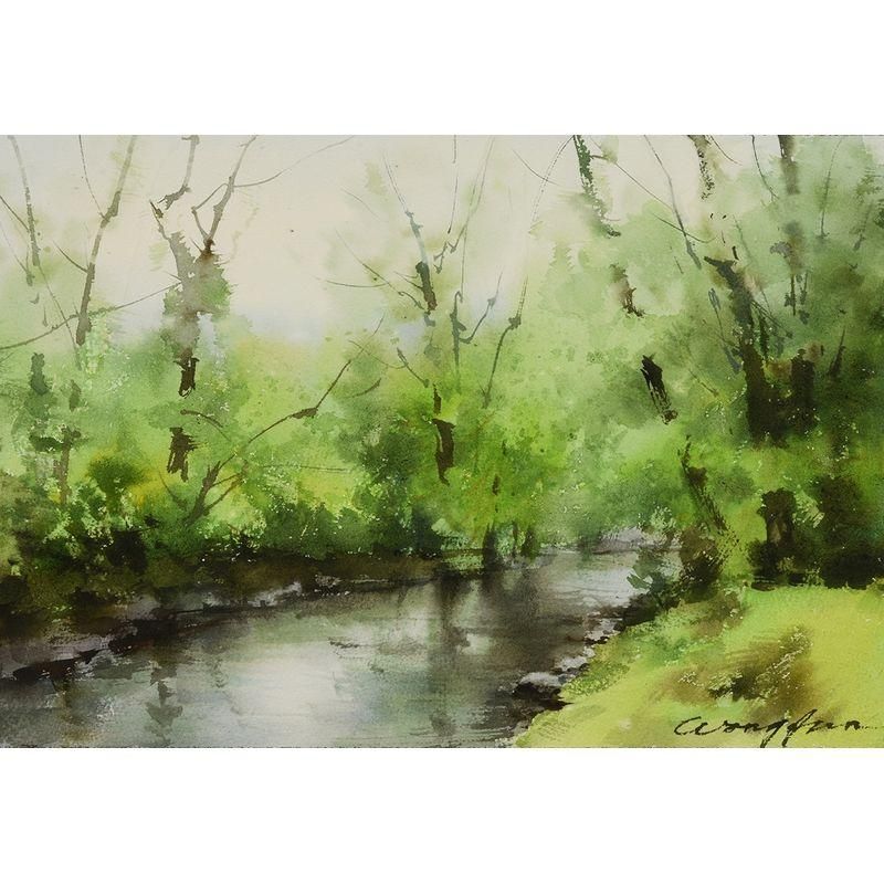 王 軍 「水辺の光景」 水彩5号大(26.5×38.0cm)