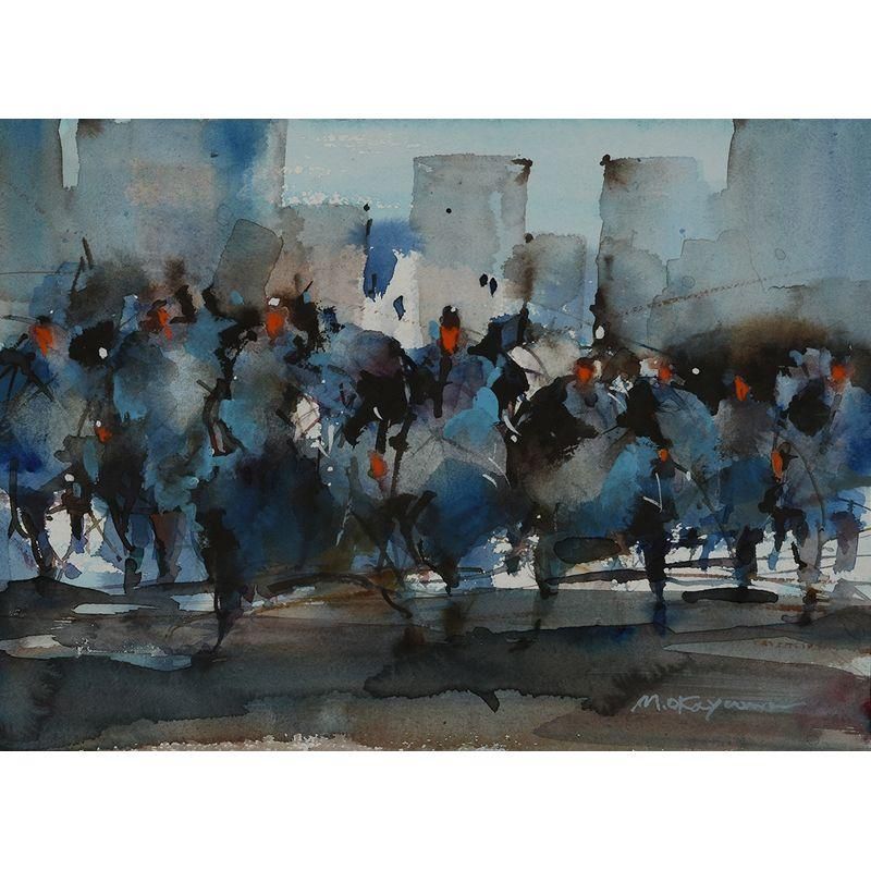 岡山昌弘 「Blue Motion」 水彩4号大(24.1×33.2cm)