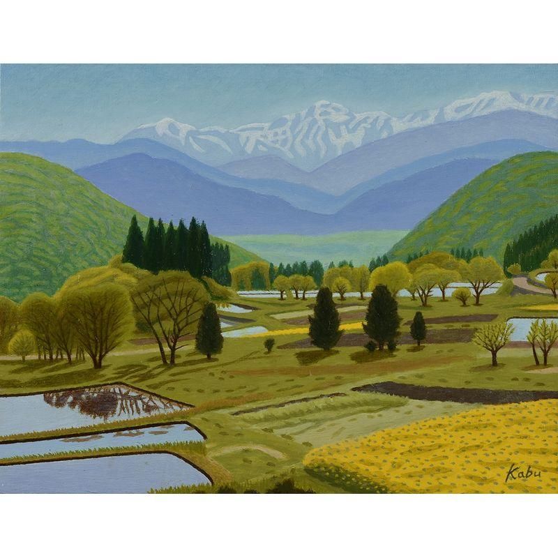 兜木速雄 「白馬村、5月の青鬼」 油彩6号