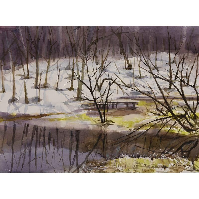 甲本喜胤 「残雪の瀞川湿原」 水彩20号大(56.5×76.6cm)
