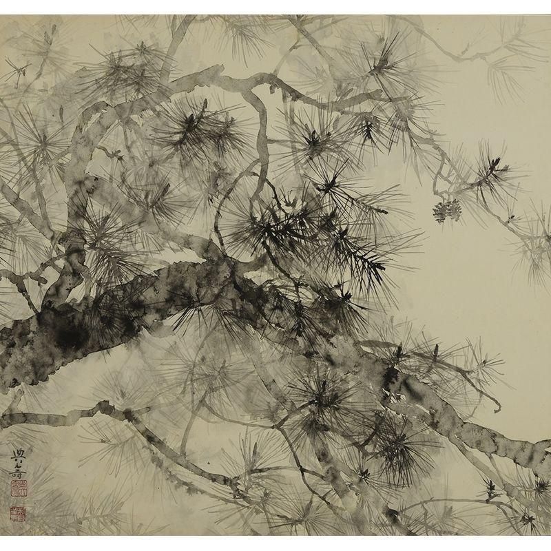 新倉章子 「男松」 水墨(69.0×73.2cm)
